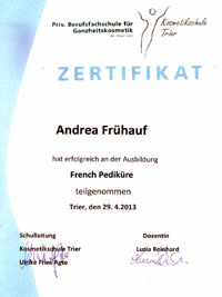 Inhaberin: Andrea Frühauf, exam. Altenpflegerin, zertifizierte Fußpflegerin, Mitglied in VFFeV
